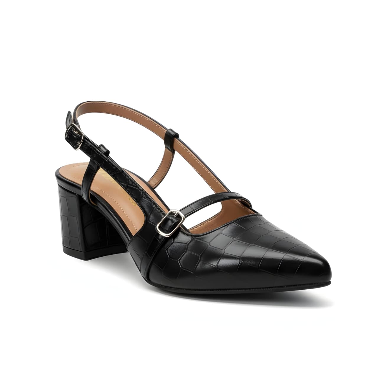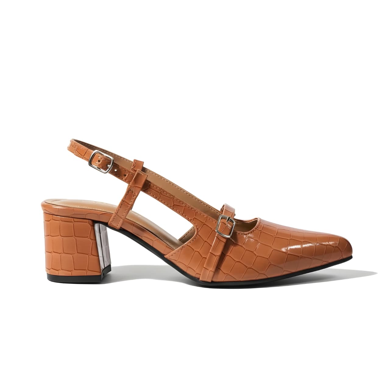 Croc Print Slingback Block Heels