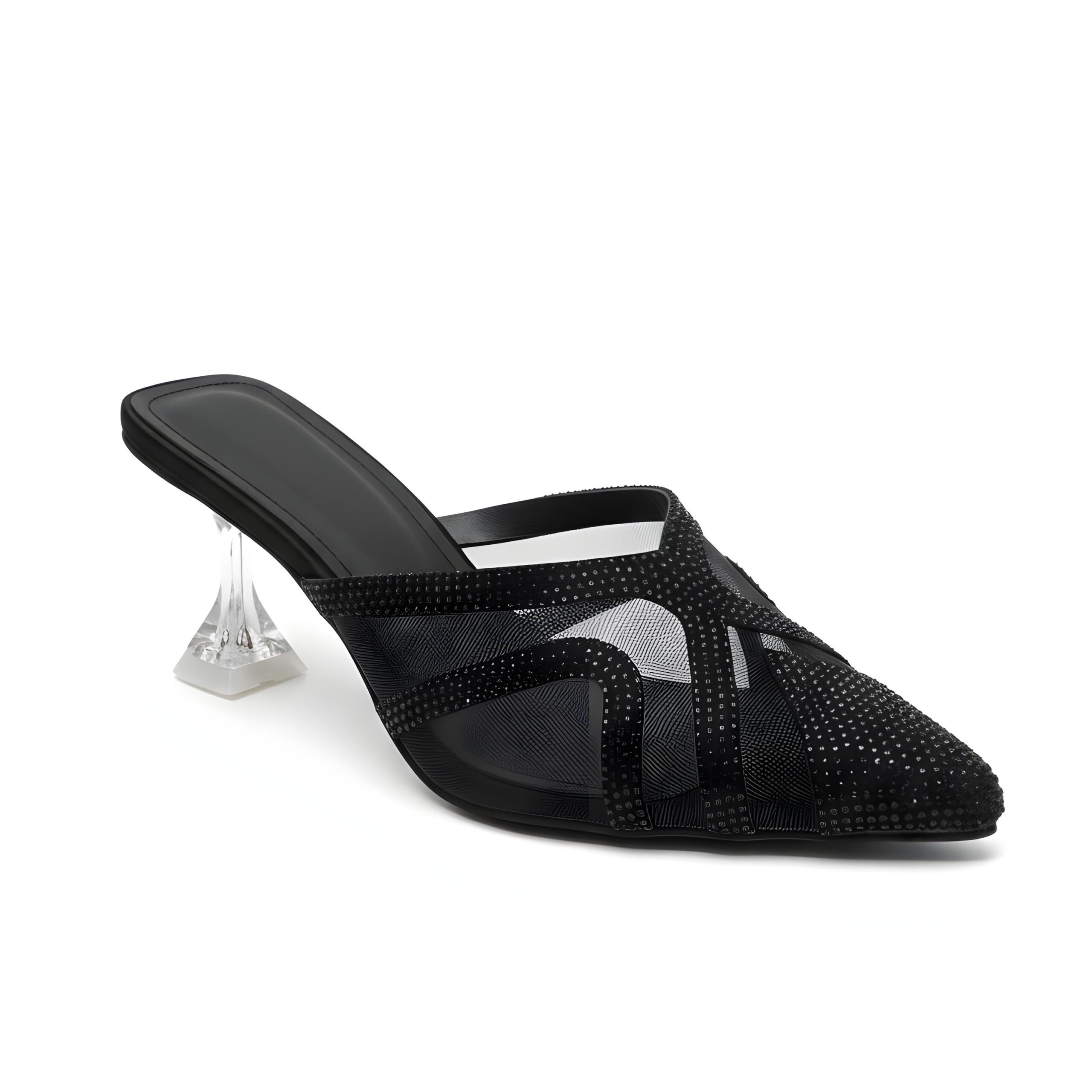 Transparent sculpted heel for a modern luxe look